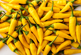 熟すと黄金色になり、パプリカに似た風味も愉しめる激辛品種。 後を引かないシャープな辛さで、さっぱりとした口当たりです。 色味そのまま、この黄金唐辛子で作る『京の黄七味・一味』は、 舌がシビれるような大辛仕立て。香り高く、クセのない辛さで お料理にサラリと馴染み、食卓を鮮やかに、刺激的に彩ります。
